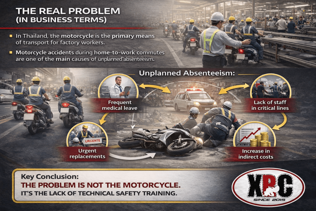 In Thailand, many employees rely on motorcycles or scooters to commute. Small accidents are common — but their impact on your business is significant: