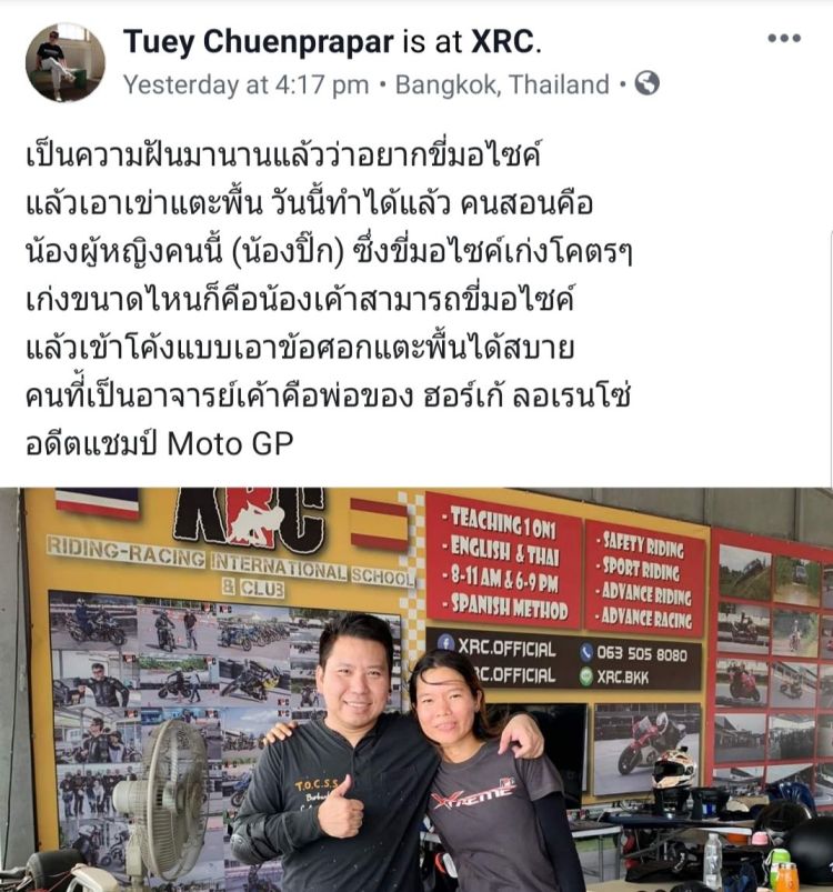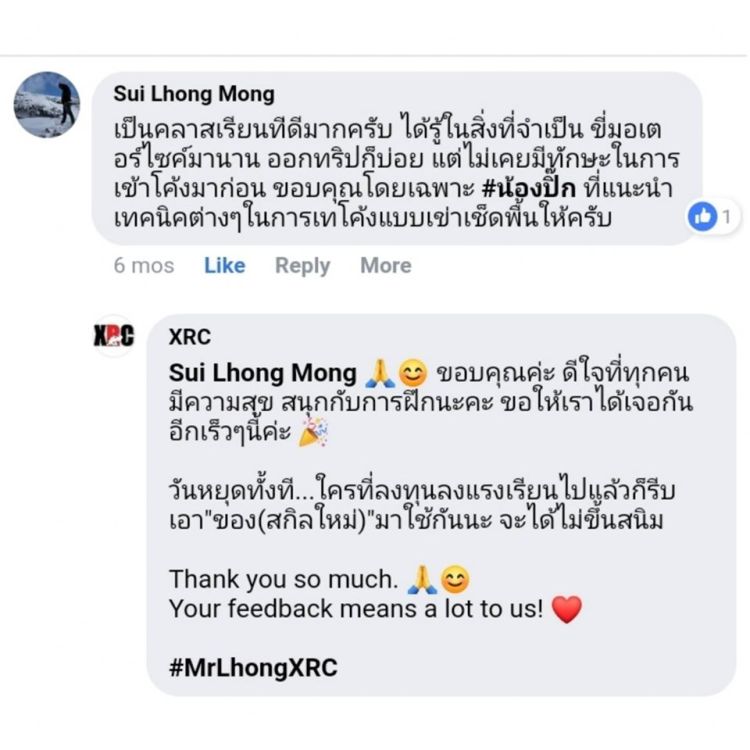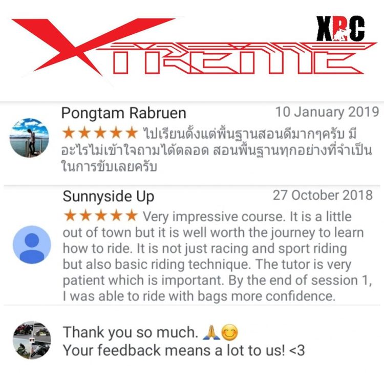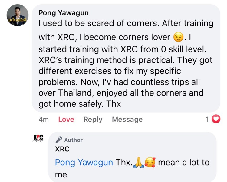 I used to be scared of corners. After training with XRC, I become corners lover 😉. I started training with XRC from 0 skill level. XRC’s training method is practical. They got different exercises to fix my specific problems. Now, I’v had countless trips all over Thailand, enjoyed all the corners and got home safety. Thx